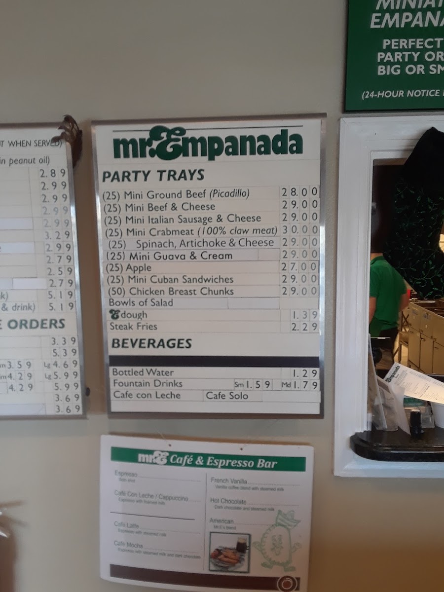 Introducing the menu at Mr. Empanada - Armenia, West Tampa, where flavors dance in every bite. Located at 4836 N Armenia Ave, Tampa, FL, this gem showcases a diverse range of empanadas that are a feast for the senses. Signature offerings include classic Ground Beef (Picadillo) and indulgent Beef & Cheese empanadas, each priced affordably at $3.49 and $3.69 respectively.